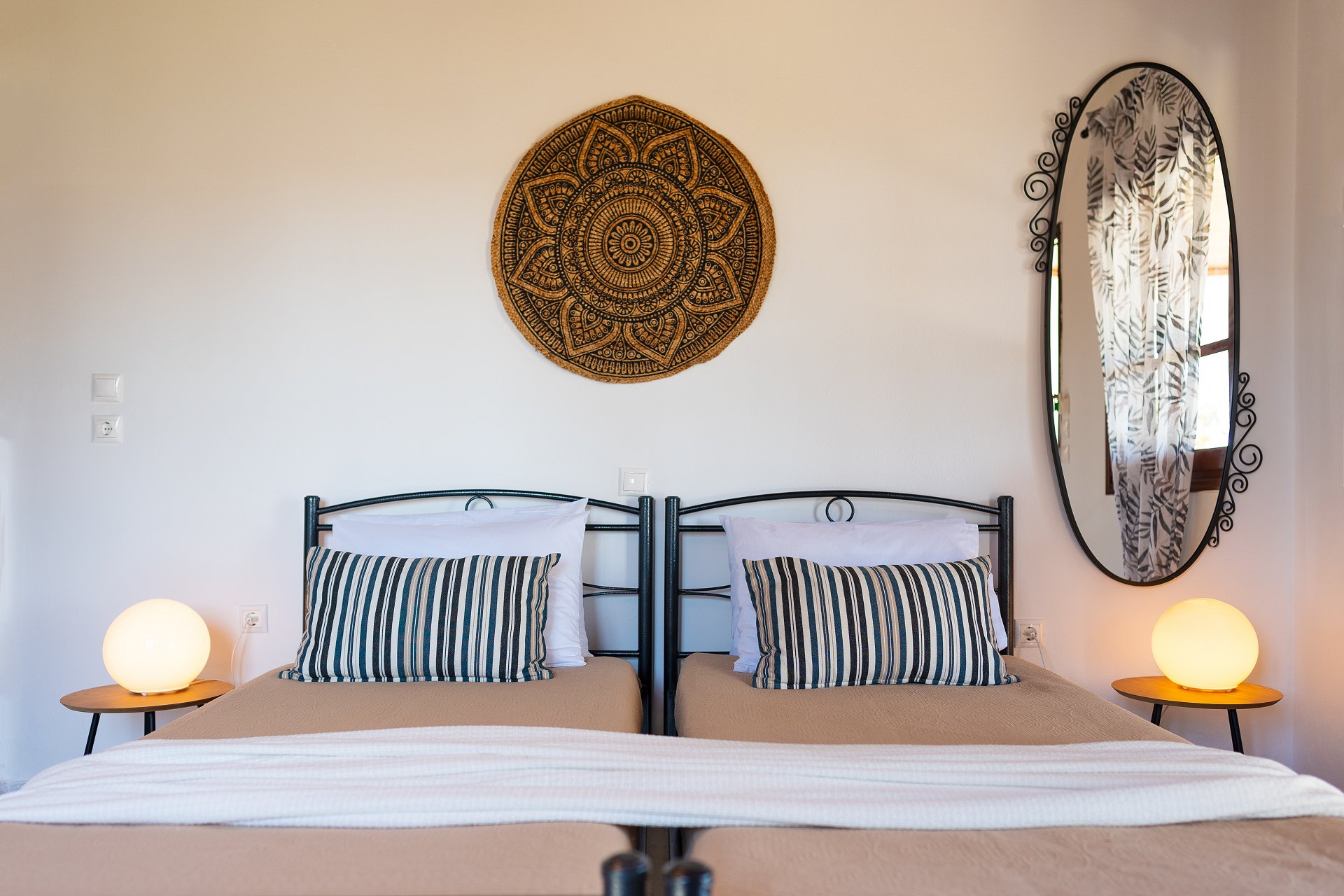 Villas Mina and Studios offers a relaxing holiday setting near the beach, featuring a shared swimming pool, sunny gardens, and comfortable accommodation suitable for couples, families, and friends. The complex consists of a two-bedroom self-catering house and four room-only studios, all sharing the outdoor facilities and pool area. Each unit is air-conditioned, with comfortable furnishings and its own outdoor sitting area.